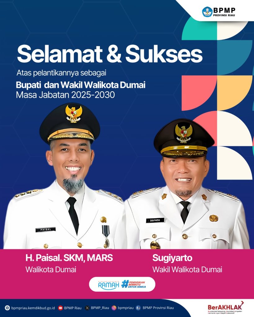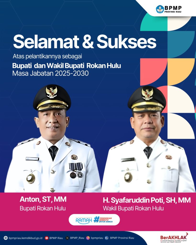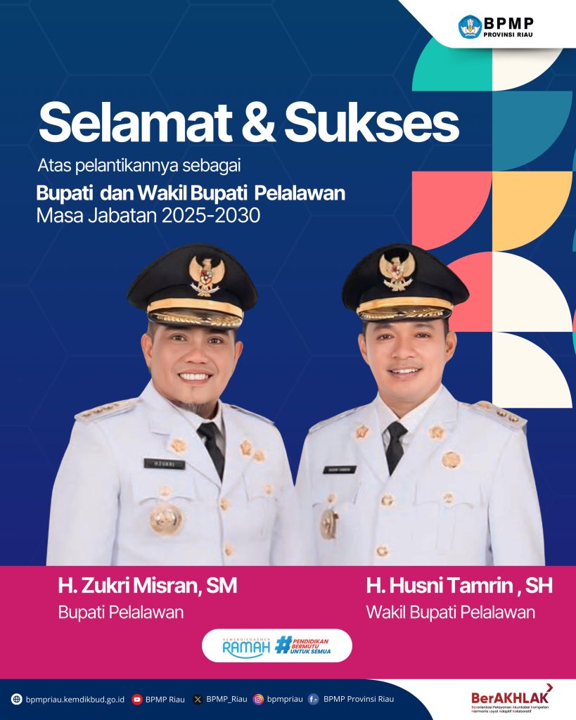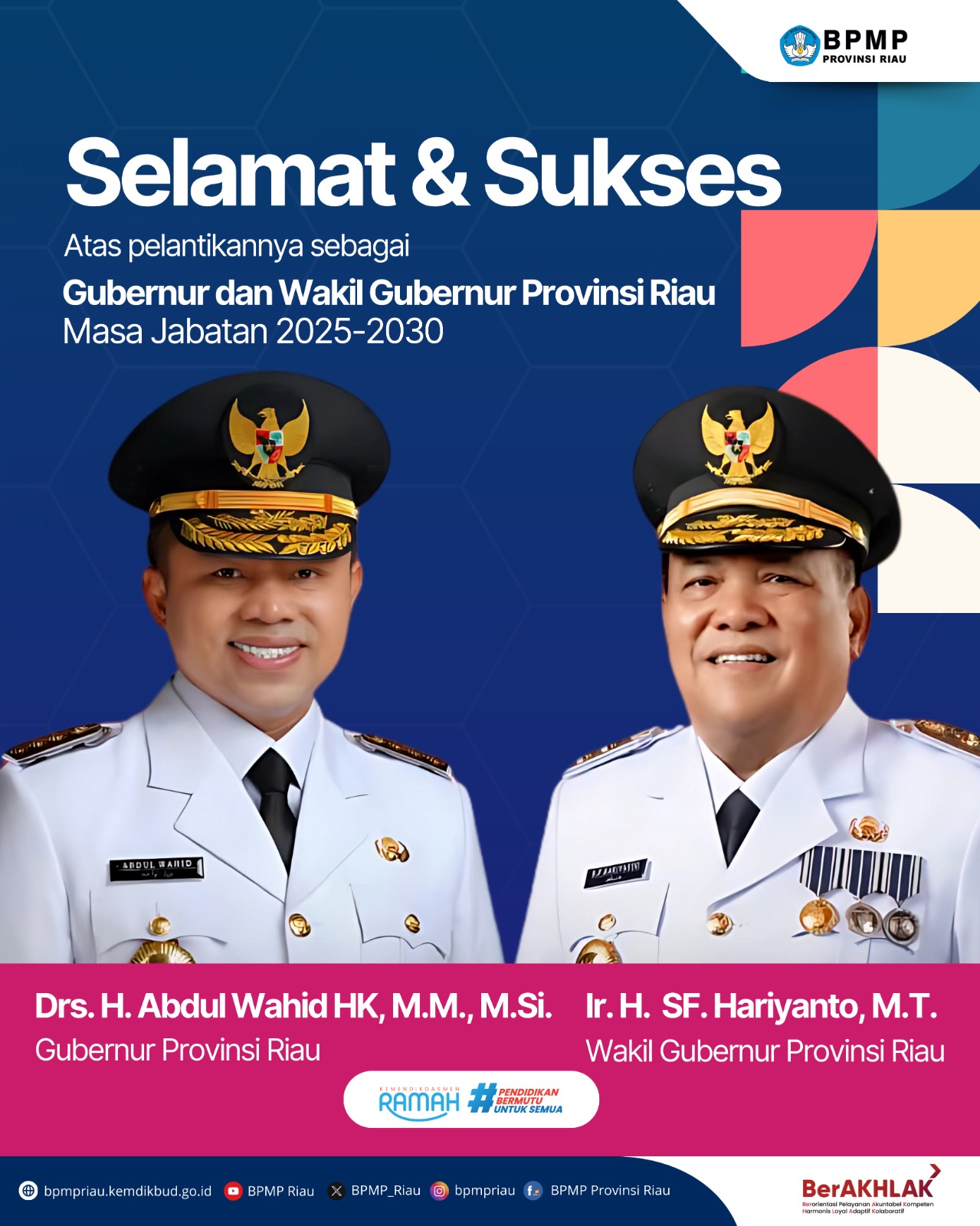 SELAMAT DAN SUKSES ATAS PELANTIKAN KEPALA DAN WAKIL KEPALA DAERAH SE-PROVINSI RIAU